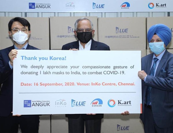 블루인더스, 인도에 KF 마스크 10만장 기부 현지 언론에 대서특필(2020.9.16)
